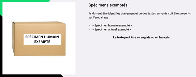 • Les spécimens exemptés et la glace sèche sont exemptés de plaque.